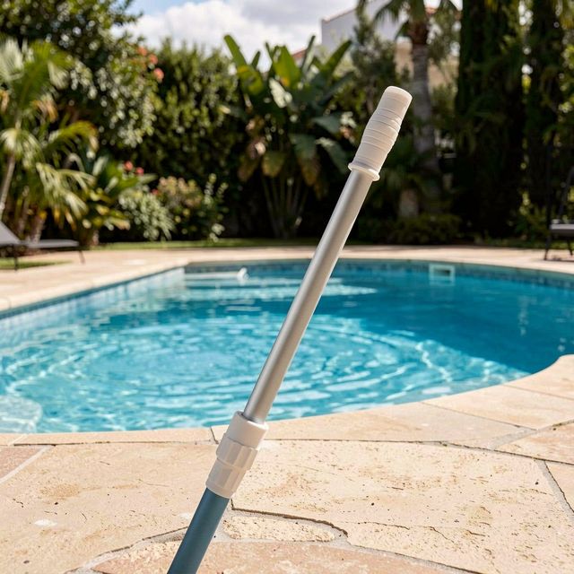 El mango telescópico Vulcano está fabricado en aluminio anodizado liso y diseñado para tareas de limpieza en piscinas bajo altas exigencias. Cuenta con un diámetro de ø32 mm y un largo total de 2,40 m