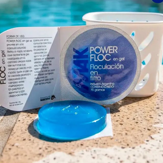 Decanta impurezas. Su acción floculante ayuda a mantener el agua cristalina. Aglomera las partículas suspendidas en el agua, depositándolas en el fondo para ser removidas fácilmente por el limpiafondo